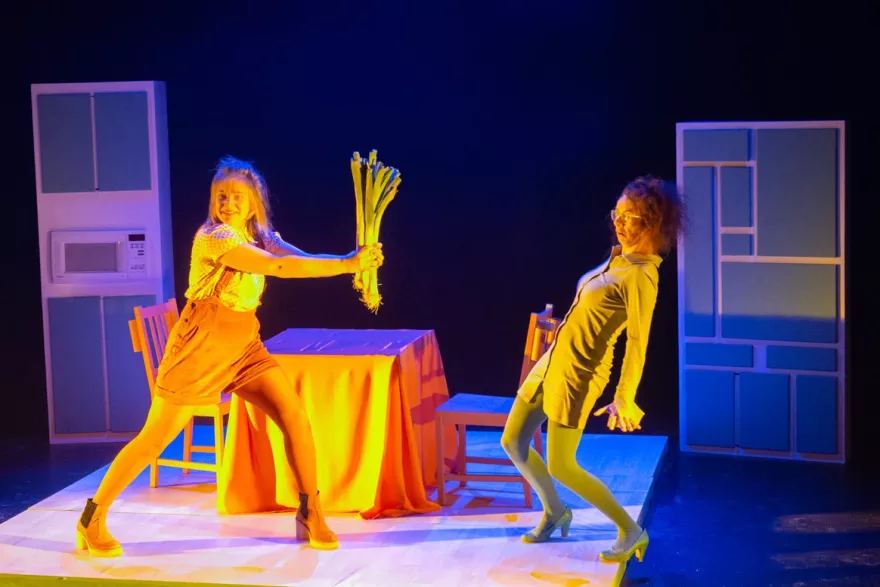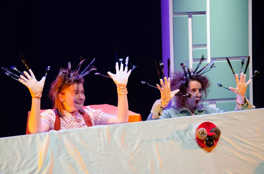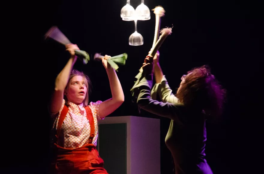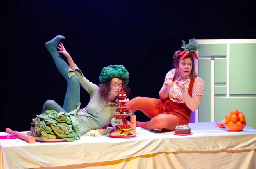 Brok is een energieke, beeldende voorstelling over eten. Over hapjes nemen, maar dat soms niet willen. Over likkebaarden en watertanden, maar ook over écht écht écht niet lusten wat er op je bord ligt.