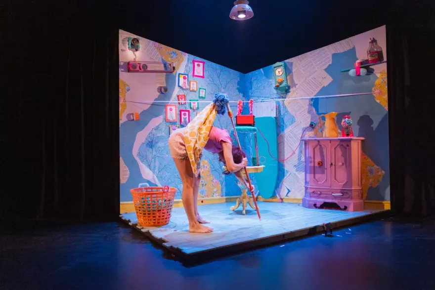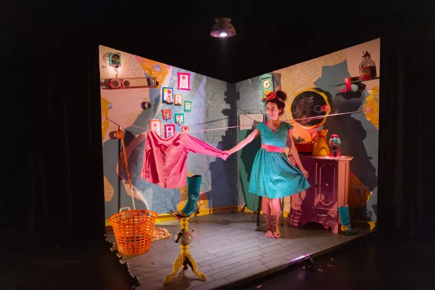 In PLAK kleeft Het WOLK een eigen wereldje aan elkaar. Een fascinerend vrouwtje neemt je mee in haar kleverige ‘alles-kan-geplakt-worden-bestaan’. Stuk bestaat niet en kapot kan weer gelijmd worden. Maar dat blijkt niet zo simpel met kleverige zweethanden, een buik vol vlinders en een hoofd dat bijna ontploft.